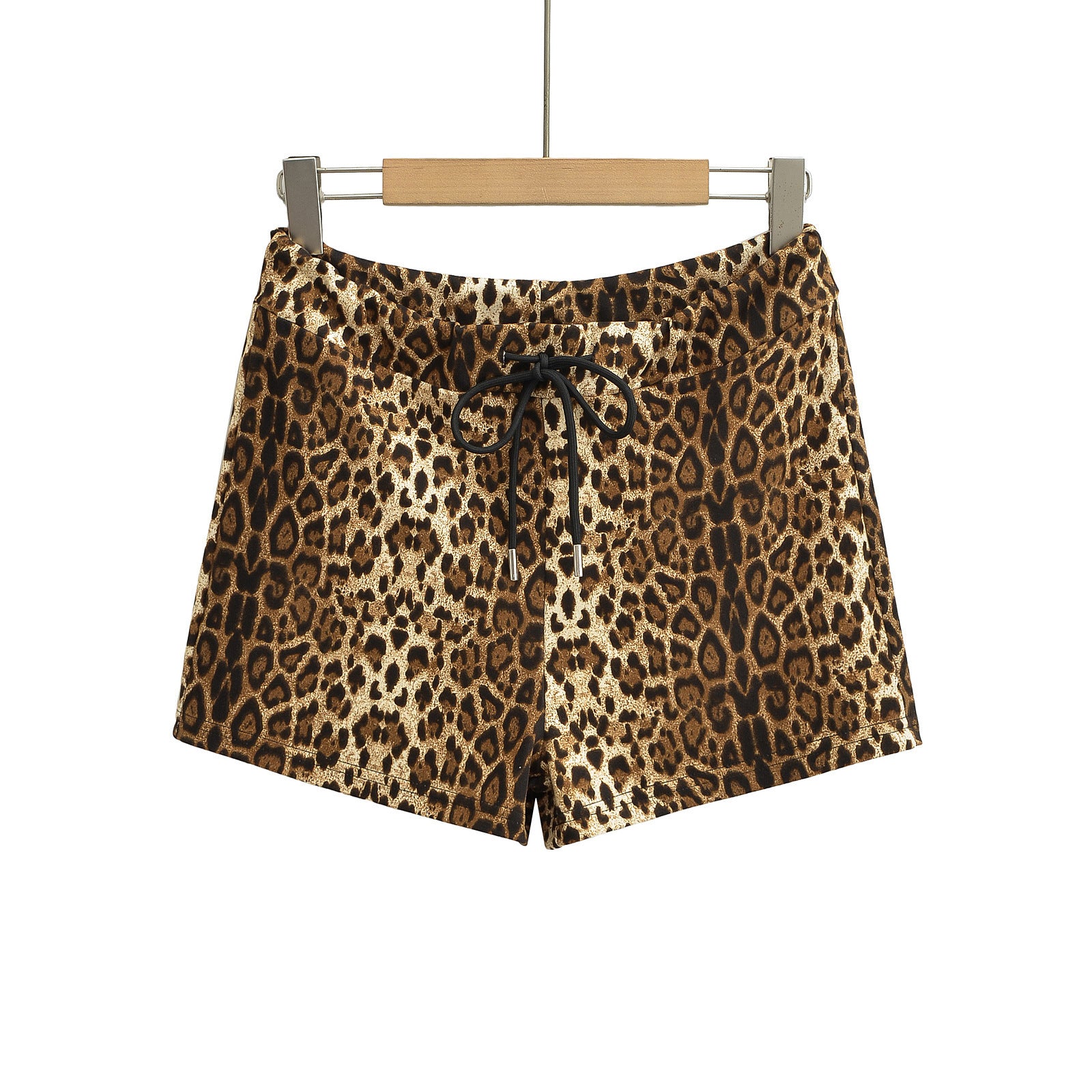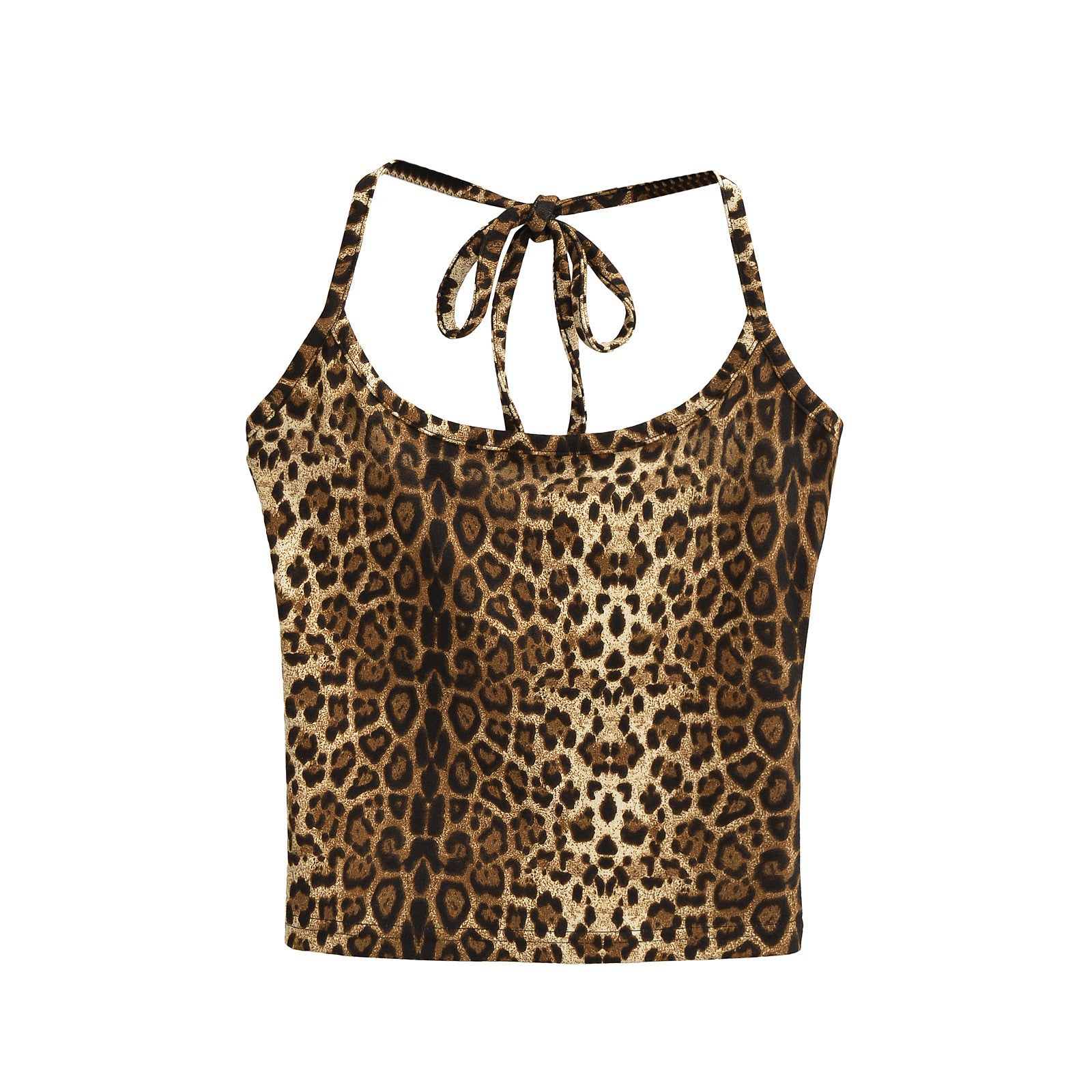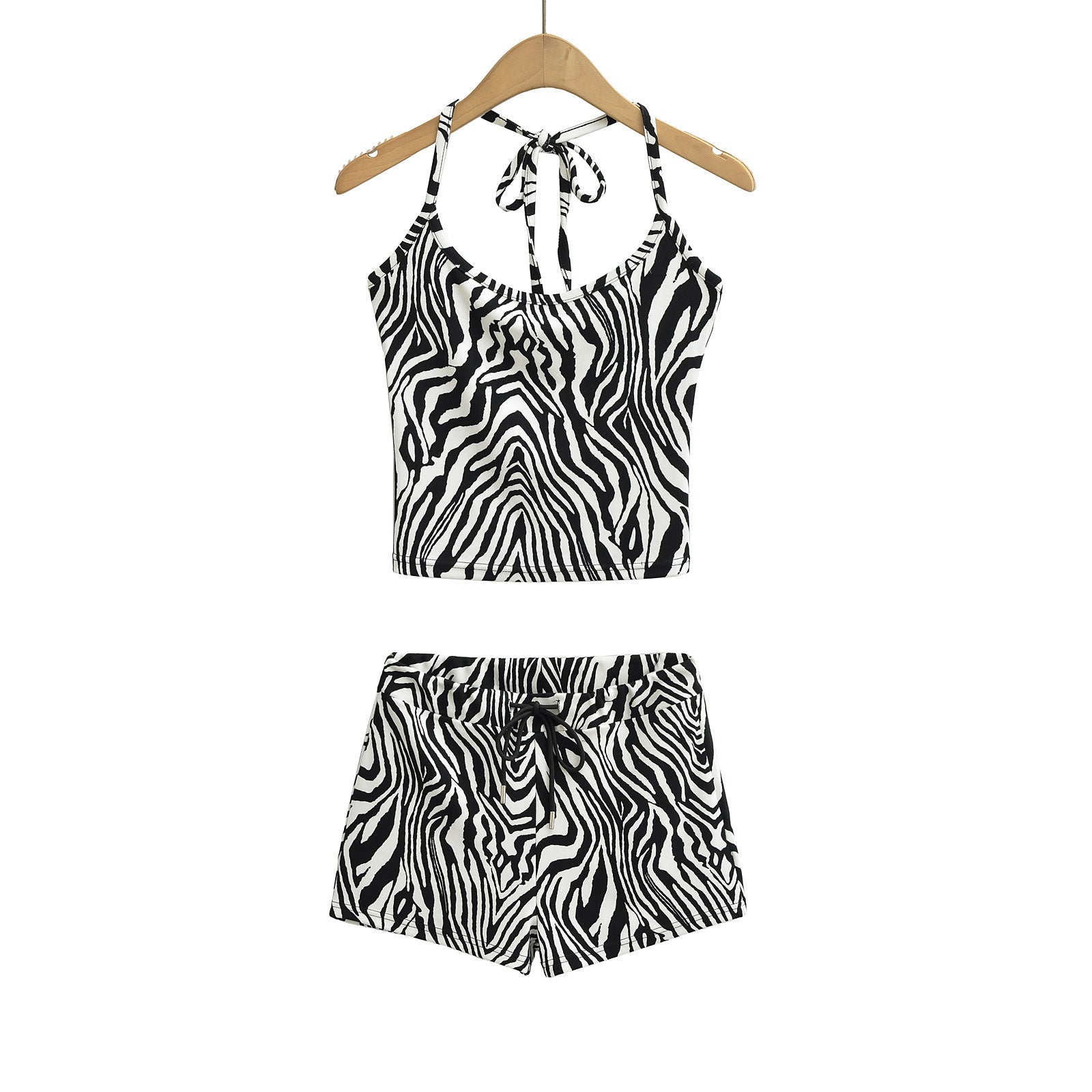 Two piece leopard print halter top+drawstring low waisted shorts